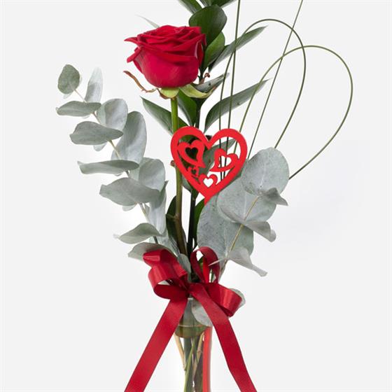 Single Red Rose presented in a Glass Bottle